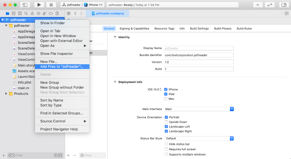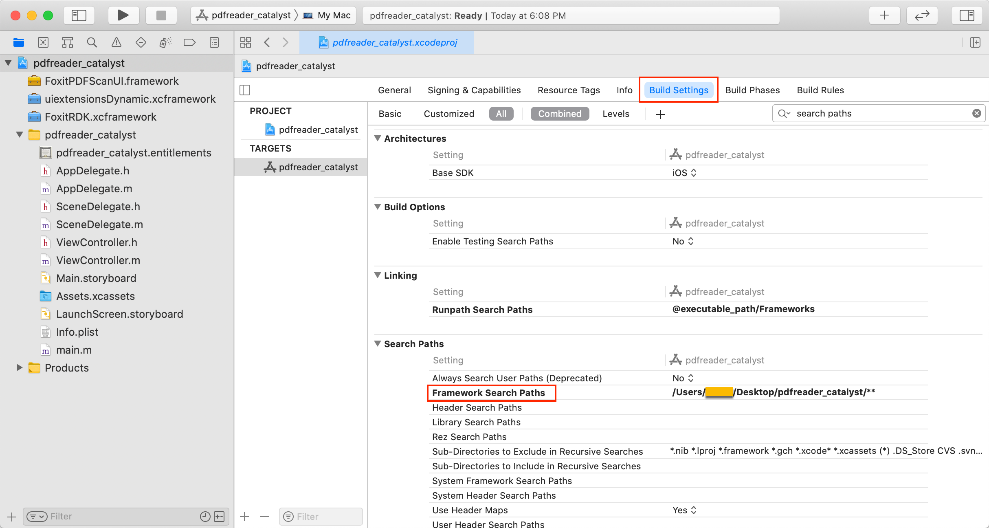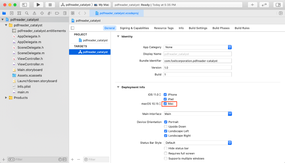 Note:From version 7.4, Foxit PDF SDK for iOS provides a new package which supports to build a Mac version app built with Mac Catalyst.