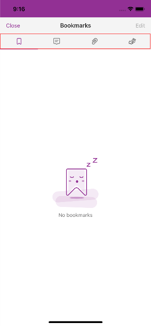 Reading Bookmark | Mark progress and interesting passages as users read. |
